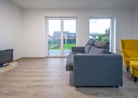 Dispozice novostavby o užitné ploše 123 m2: garáž, vstupní chodba, koupelna se sprchovým koutem a WC, obývací pokoj s kuchyňským koutem a vstupem do zahrady. V patře čtyři neprůchozí pokoje, prostorná koupelna s WC a vstup na půdu (dalších cca 20 m2 úložných prostor) . Ohřev vody a podlahové vytápění zajištěno vlastním tepelným čerpadlem Samsung.