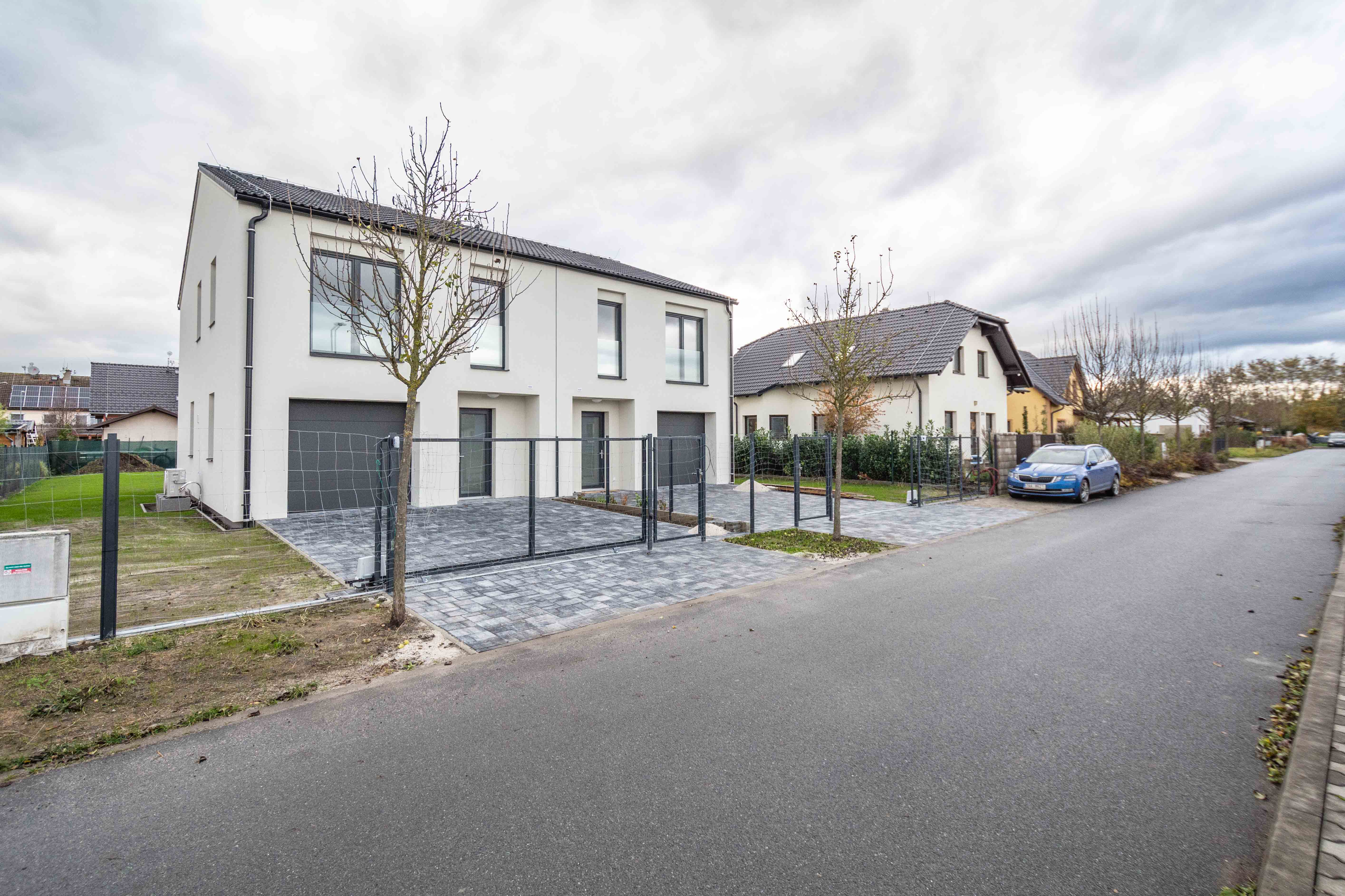 Z přední části má každá jednotka branku a pojezdovou bránu s motorem, zahrada i předzahrádka je rozdělena na dvě stejné části.