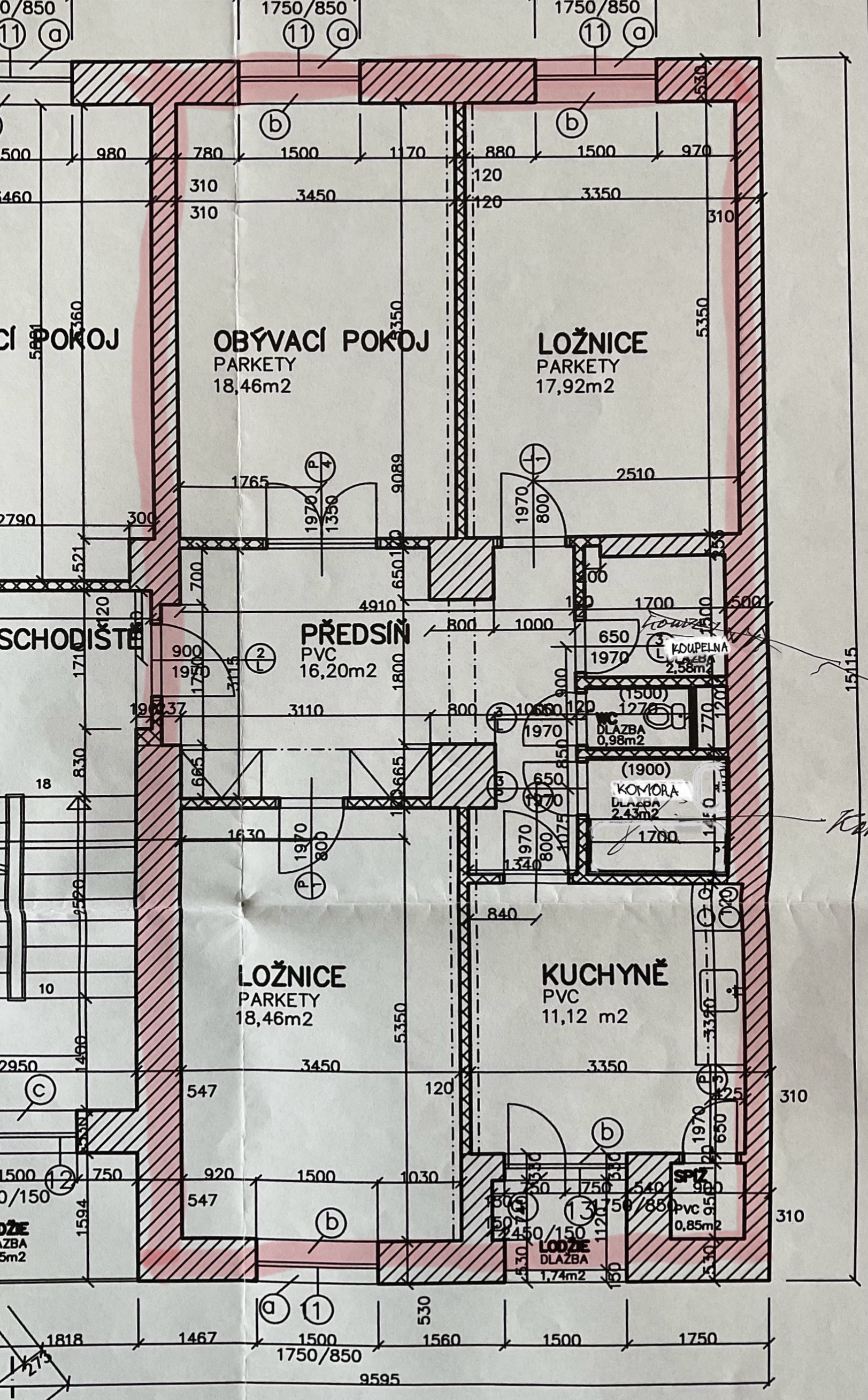 Dispozice bytu v osobním vlastnictví: prostorná předsíň s vestavěnou skříní, obývací pokoj, dvě ložnice, šatna, koupelna se sprchovým koutem, samostatné WC a kuchyně se spíží a vstupem na zasklenou lodžii. K bytu patří vlastní sklep.