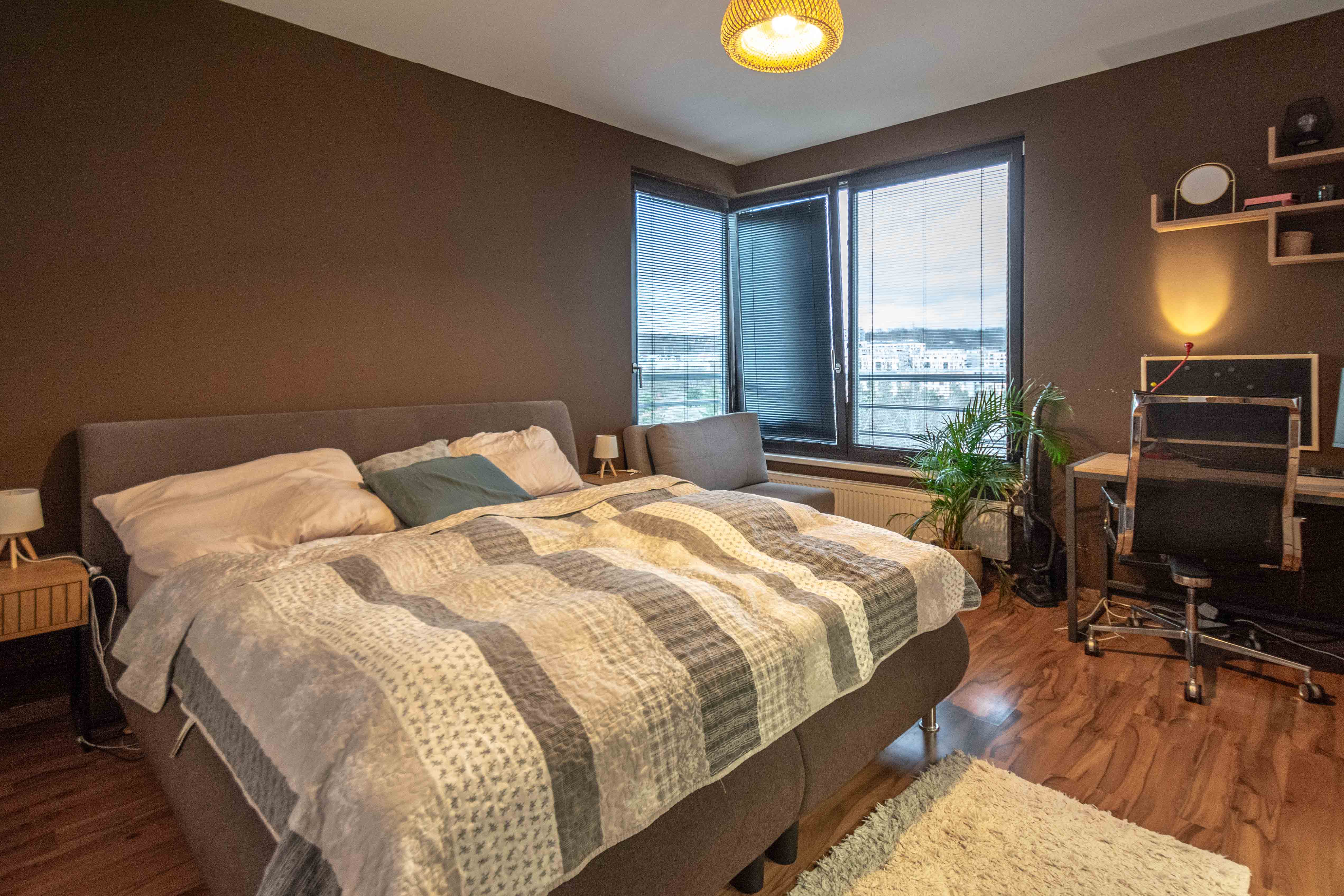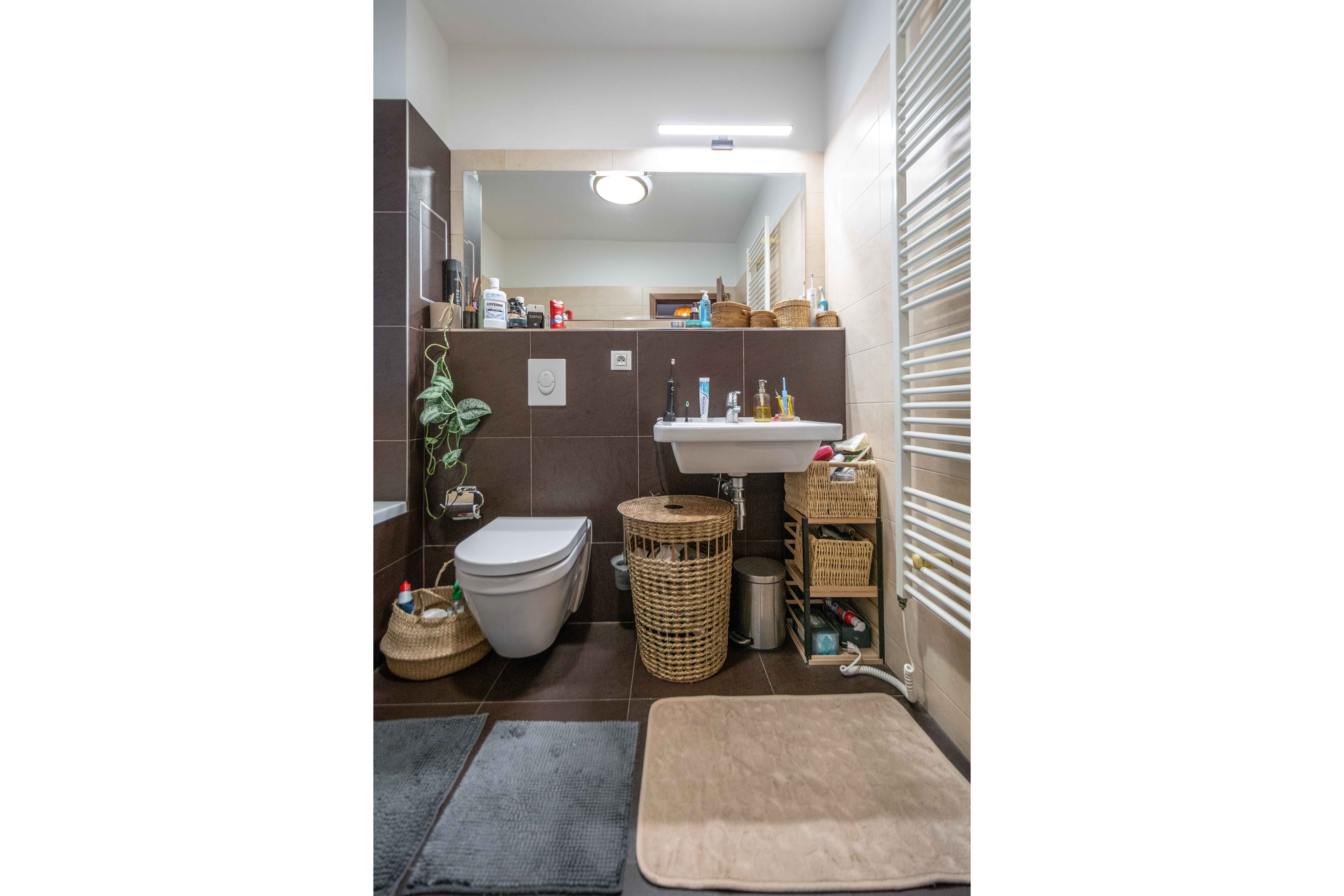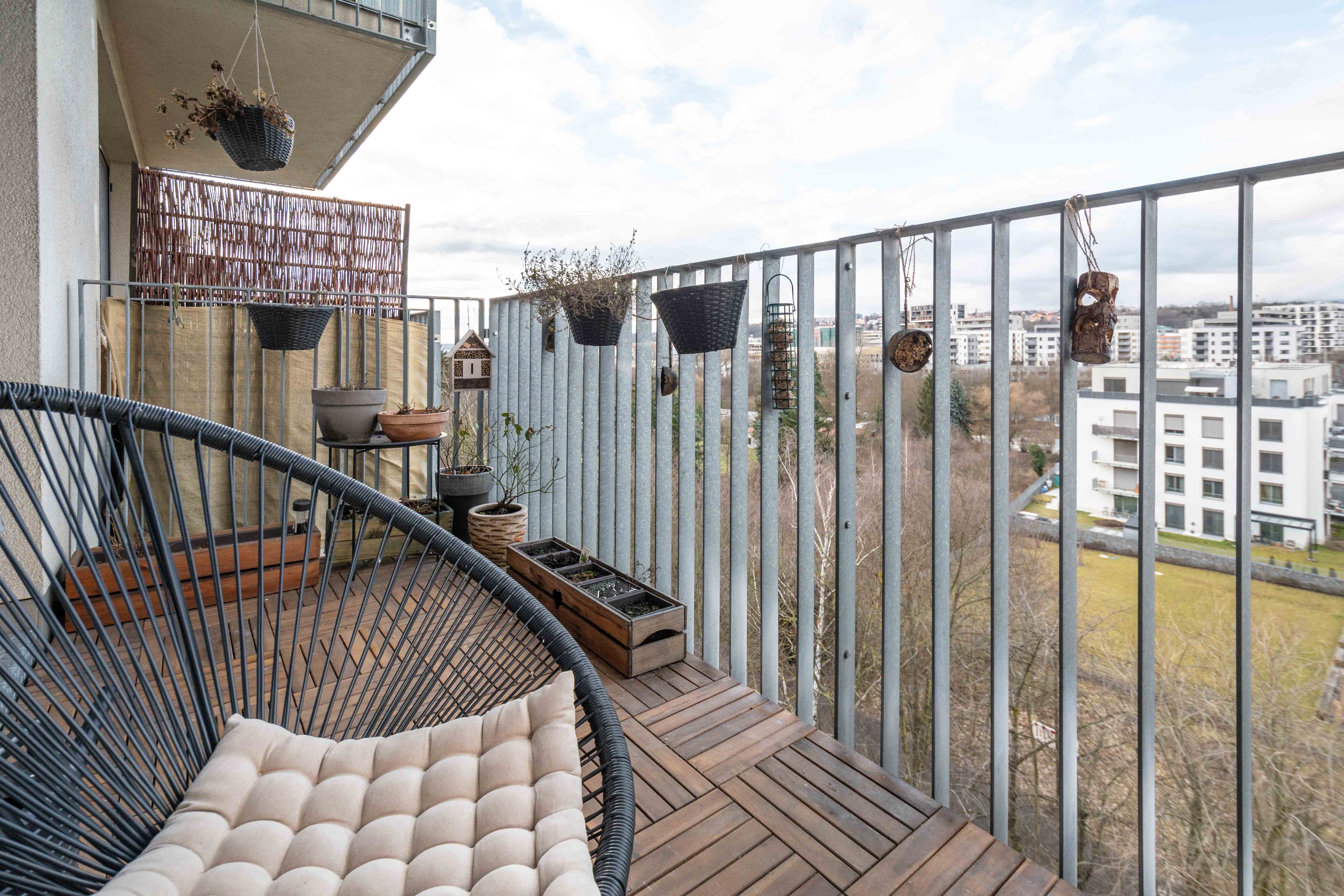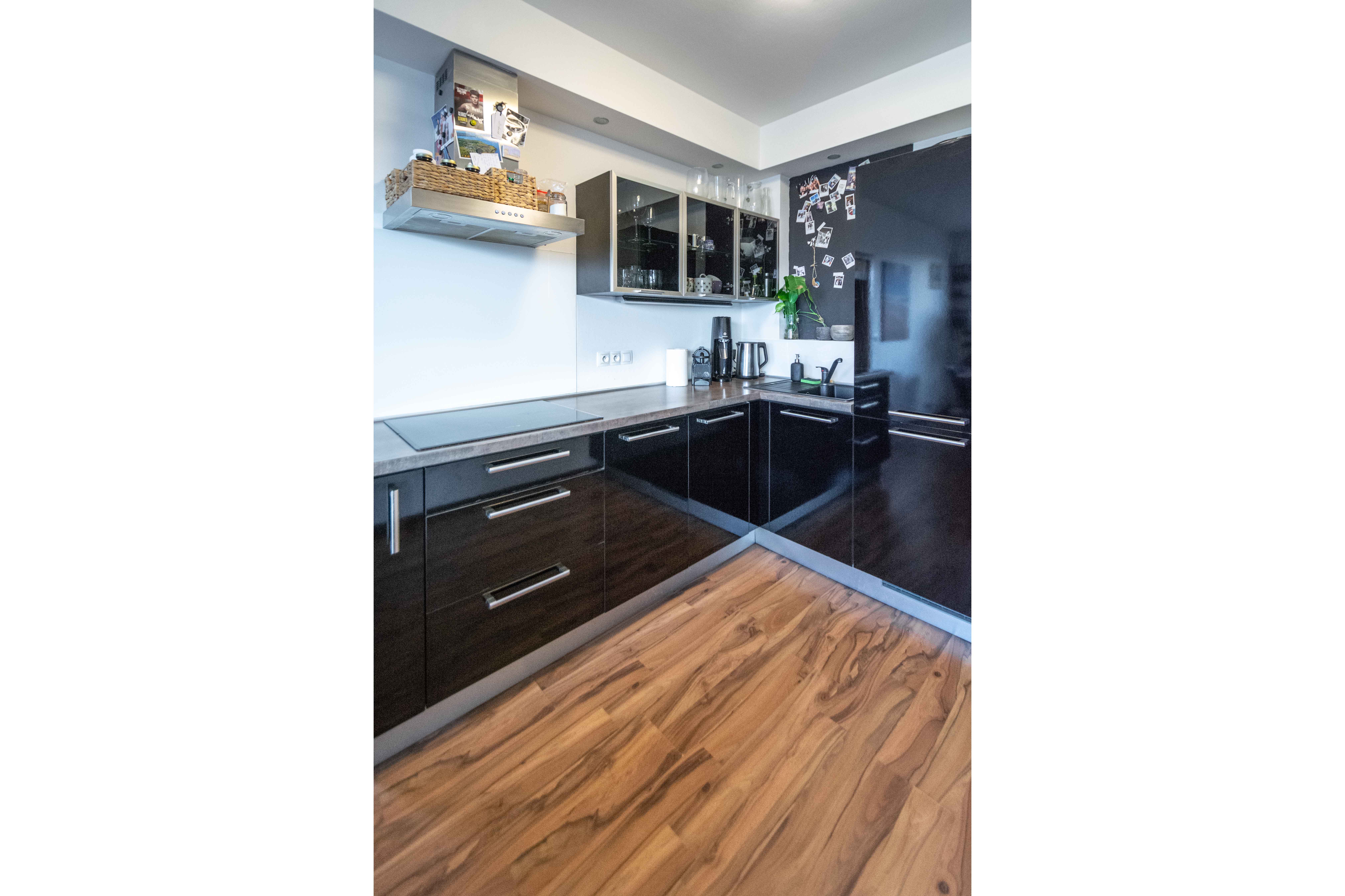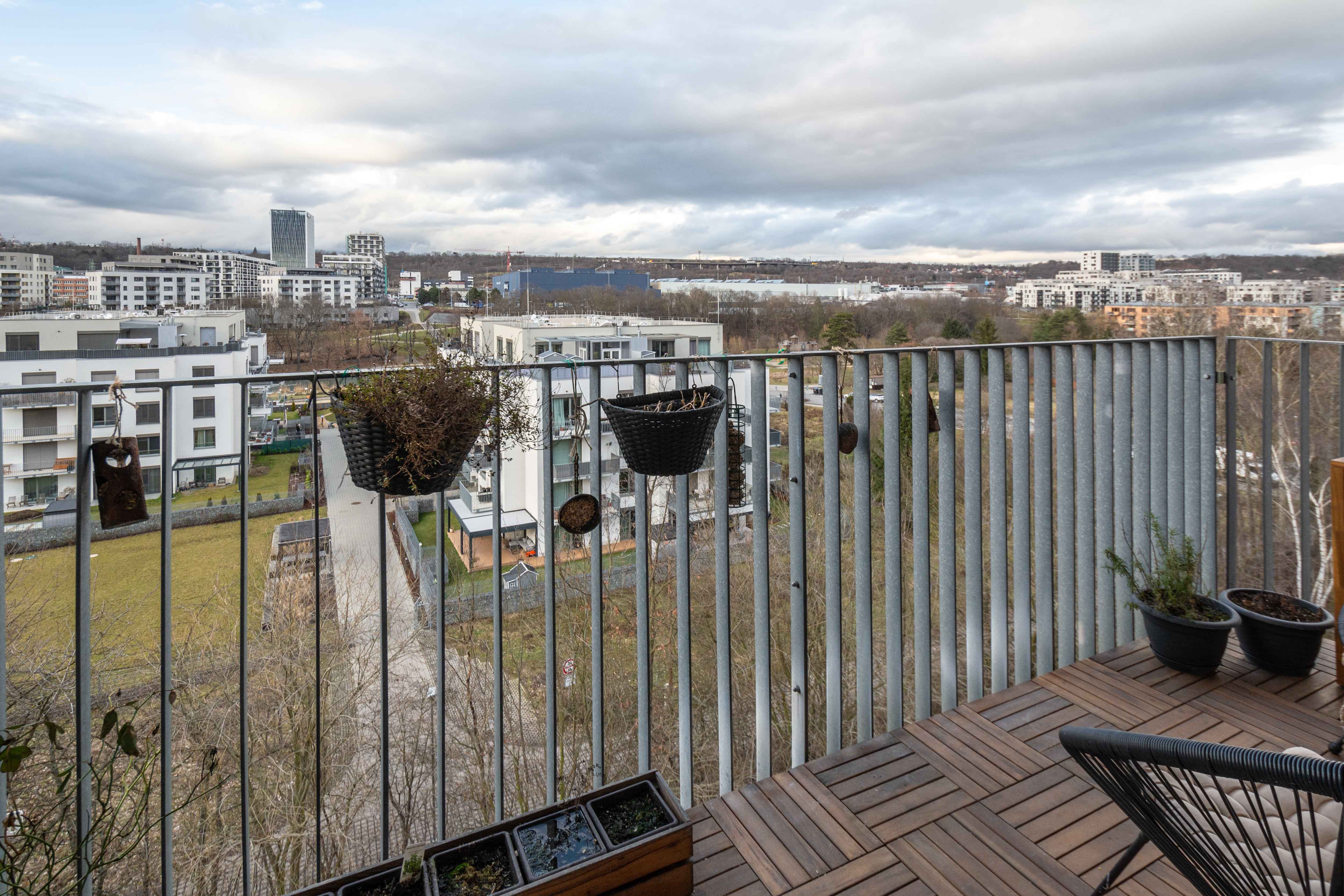 Celková plocha bytu 59,6 m2 + sklep + prostorný balkón o velikosti 5,7 m2, ze kterého můžete sledovat západ slunce nad Prahou. Kuchyňská linka včetně vestavěných spotřebičů: myčka, lednice s mrazákem, el. trouba, indukční deska a digestoř.